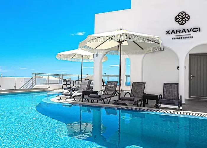 Museum des vorgeschichtlichen Thira ist rund 900 Meter von entfernt und die Bushaltestelle Taxi ist 500 Meter vom Hotel entfernt. Santorini Vulkan liegt unter anderem in ungefähr 3 km Entfernung. Volkskundemuseum von Santorin liegt in circa 600 Meter Entfernung vom Xaravgi Resort Suites. Für Fernreisende ist der Flughafen Santorin in 10 Minuten mit dem Auto zu erreichen.